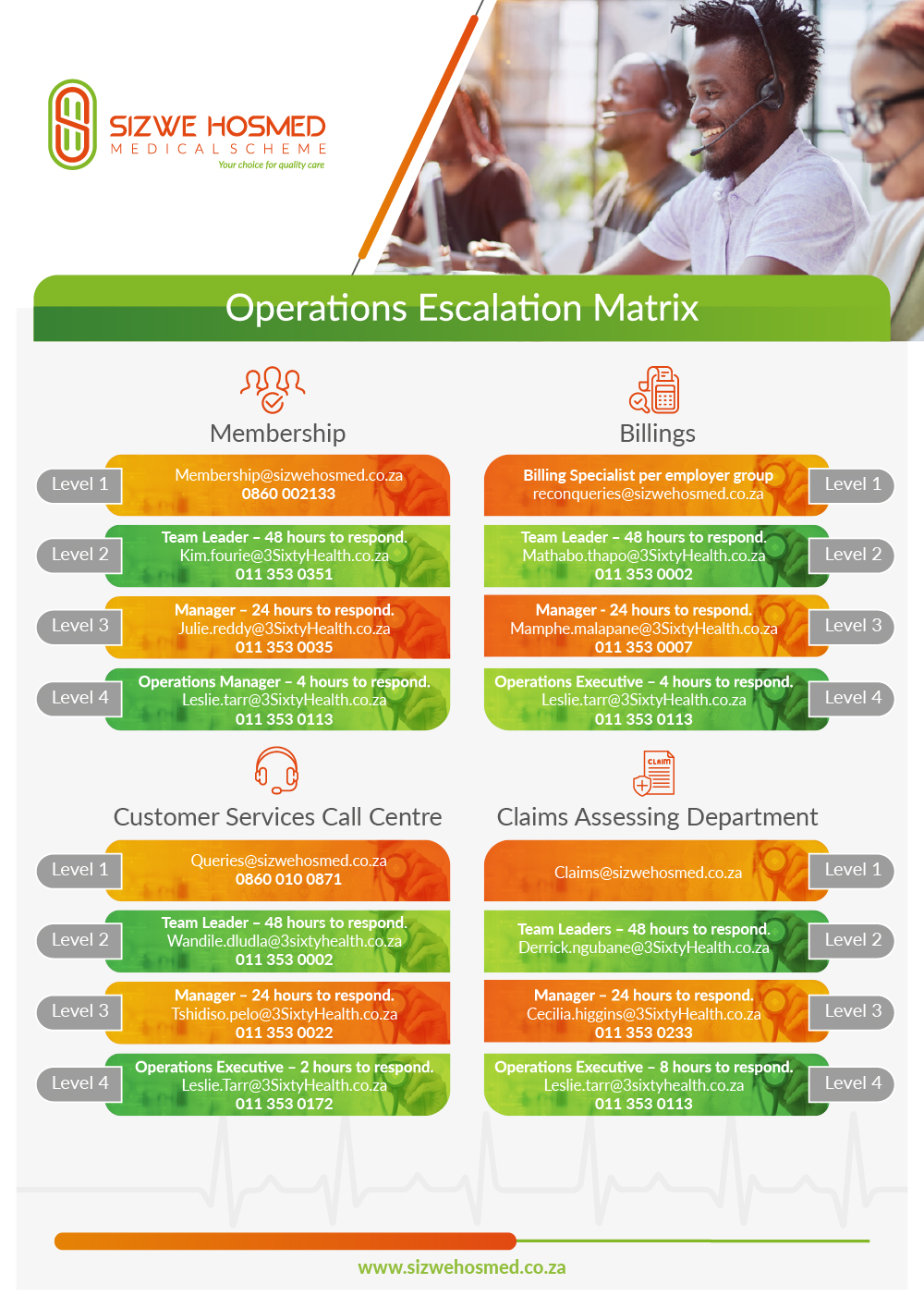 Members may submit complaints via our dedicated email address PO@sizwe-hosmed.co.za. Once received, the Principal Officer will provide a formal written response within thirty (30) days.